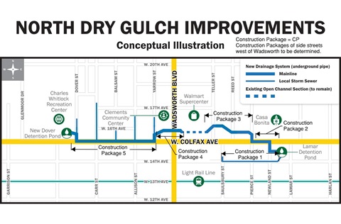 To mitigate flooding issues along West Colfax Avenue and protect residents, businesses and city streets, the City of Lakewood and the Mile High Flood District are joining efforts on the North Dry Gulch Improvements.